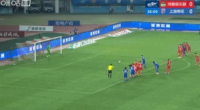 第39分钟,特谢拉造点,吴曦点射破门,申花1-0领先河南