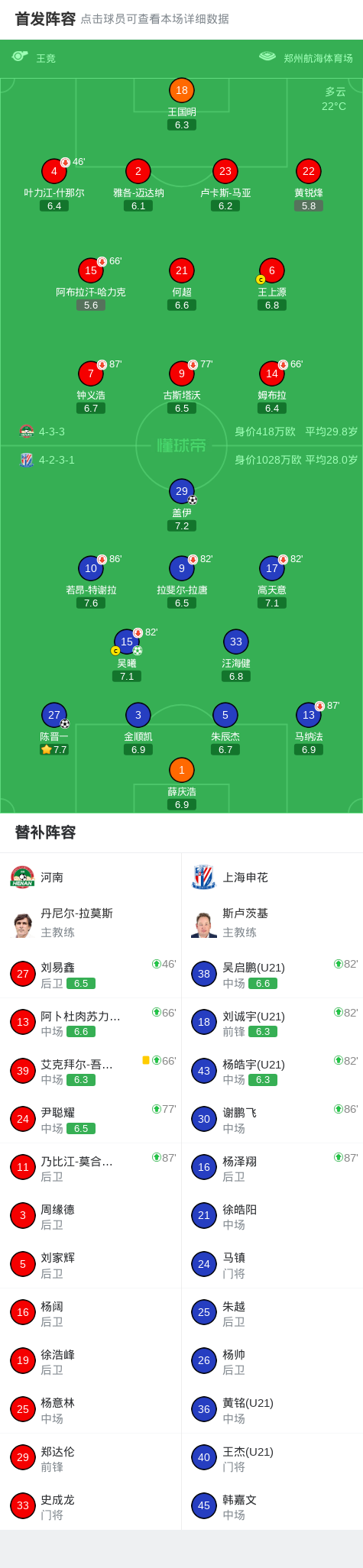 北京时间4月26日中国足球超级联赛 联赛 第8轮,河南主场对阵上海申花。上海申花吴曦破门,陈晋一破门,盖伊破门。最终比分河南 0-3 上海申花。