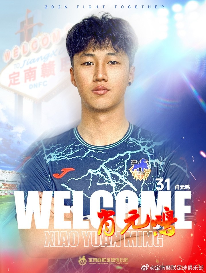 2026赛季肖元鸣加入定南赣联,将身穿31号球衣代表定南赣联参加中甲联赛,欢迎肖元鸣加入定南赣联足球俱乐部。